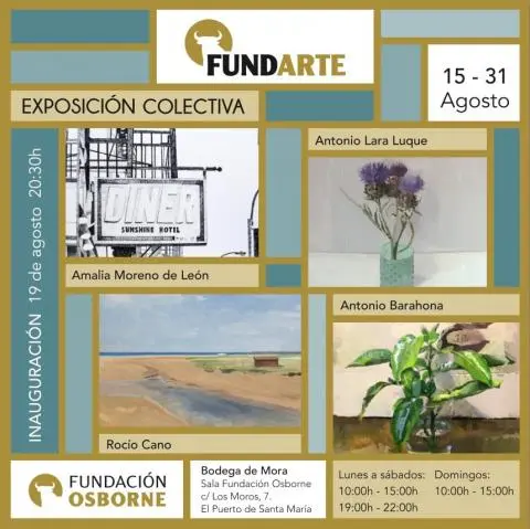 El Puerto de Santa María, 15 de agosto de 2019. La Fundación Osborne acaba dar comienzo a la tercera exhibición del ciclo FundArte, una muestra colectiva con obras de 4 artistas que podrán disfrutarse desde el 15 de agosto hasta el 31 de agosto. La inauguración tendrá lugar el lunes 19 de agosto a las 20.30 horas.