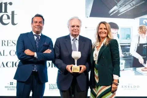 2024 El Puerto de Santa María, 22 de octubre.- Anoche, el suplemento de estilo de vida y gastronomía Fuera de Serie, del periódico económico Expansión, entregó su séptima edición de los Premios Gourmet en Madrid. Entre los galardones, destaca el que reconoce la labor social que está realizando la Fundación Osborne, cuyo objetivo es facilitar la incorporación de jóvenes al mundo laboral a través de la formación en restauración, abarcando tanto cocina como sala. La Escuela Gastro ha estado en funcionamiento durante cuatro años, formando a más de 275 alumnos en sus instalaciones. Este programa beneficia a jóvenes que provienen de situaciones de vulnerabilidad y de países en conflicto, como Ucrania, Senegal, Mauritania, Colombia, Venezuela y Cuba. Familias desestructuradas y personas con escasos recursos encuentran en esta Escuela la oportunidad de transformar sus vidas mediante el empleo. Con una tasa de empleabilidad superior al 95%, este proyecto colaborativo involucra a instituciones y asociaciones como Nuevo Hogar Betania (Premio Princesa de Girona), Movimiento por la Paz, Cruz Roja, Cáritas, Afanas, y otras empresas que brindan su apoyo, como Fundación La Caixa, Makro, Café Candelas y Ebro Foods.