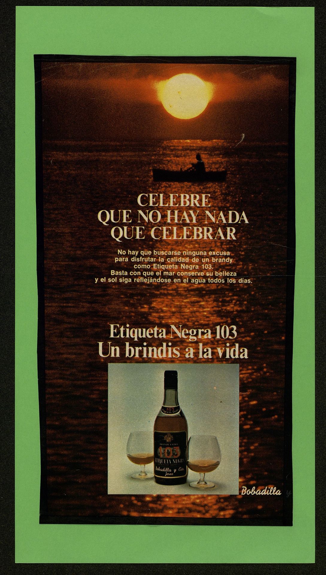 Celebre que no hay nada que celebrar.Etiqueta Negra 103. Un brindis a la vida. Botella de 103 Etiqueta Negra, dos copas y de fondo la puesta de sol